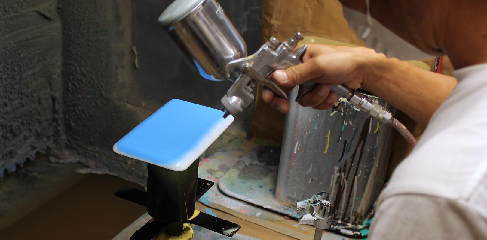 多様化するお客様のご要望に対応するため、デジタル化や機械化では決して出来ない、長年の経験を持つ熟練職人の調色技術により、高い美粧性とオリジナリティを実現しています。また、トレイやお皿などにノンスリップ機能を付与するウレタン塗装など、消費者に安心して使って頂くため、高い機能性を実現しています。